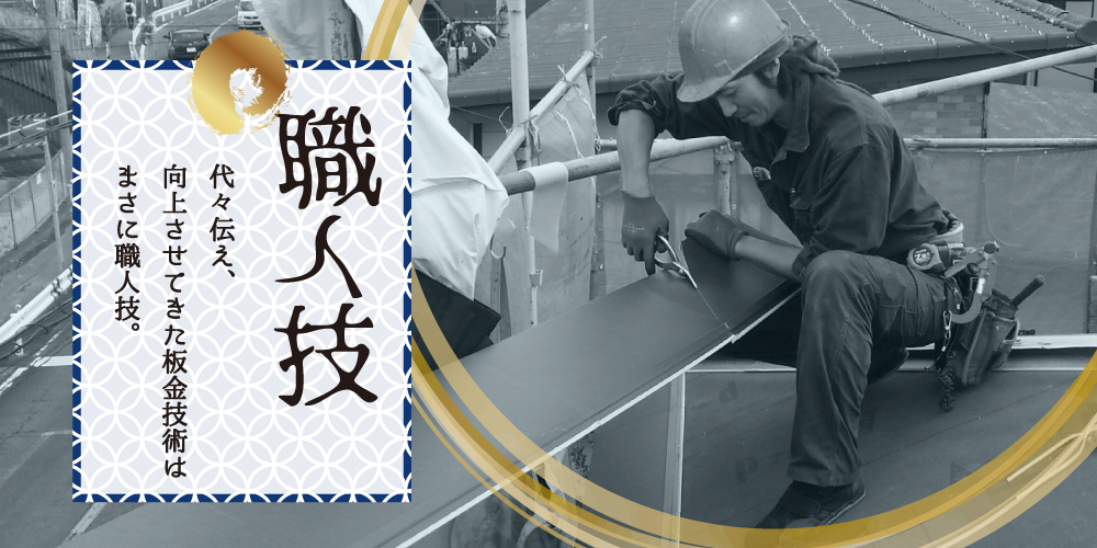 私たちは屋根材の中でも機能性の高い金属屋根にこだわりぬき、板金施工専門店を代々経営してきました。