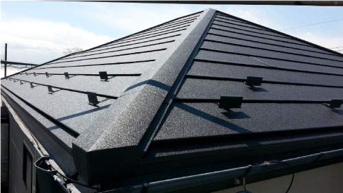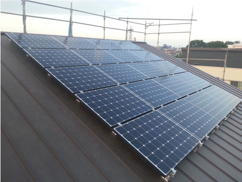 信和板金工業は、屋根に穴を開けずにソーラーパネルを取り付けることができますので、雨漏りの心配がございません。取り付けの際は、屋根形状や日光のむきに合わせて施工をいたします。