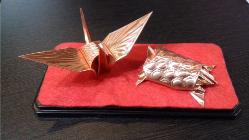 銅鶴、銅亀(金属折り紙)