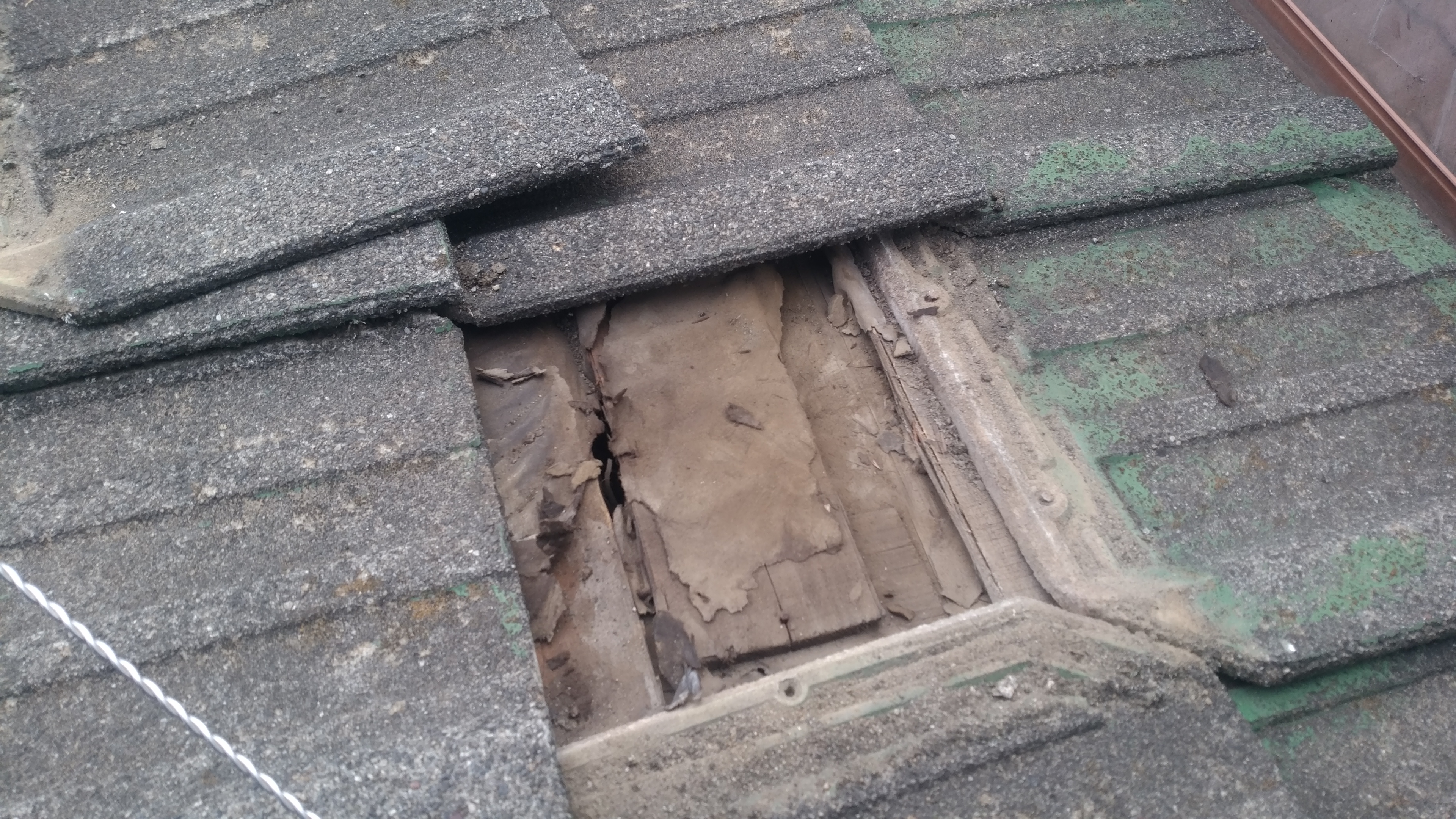 だいぶ年季の入ったセメント瓦です。表面的には割れている瓦は見当たりませんが…。