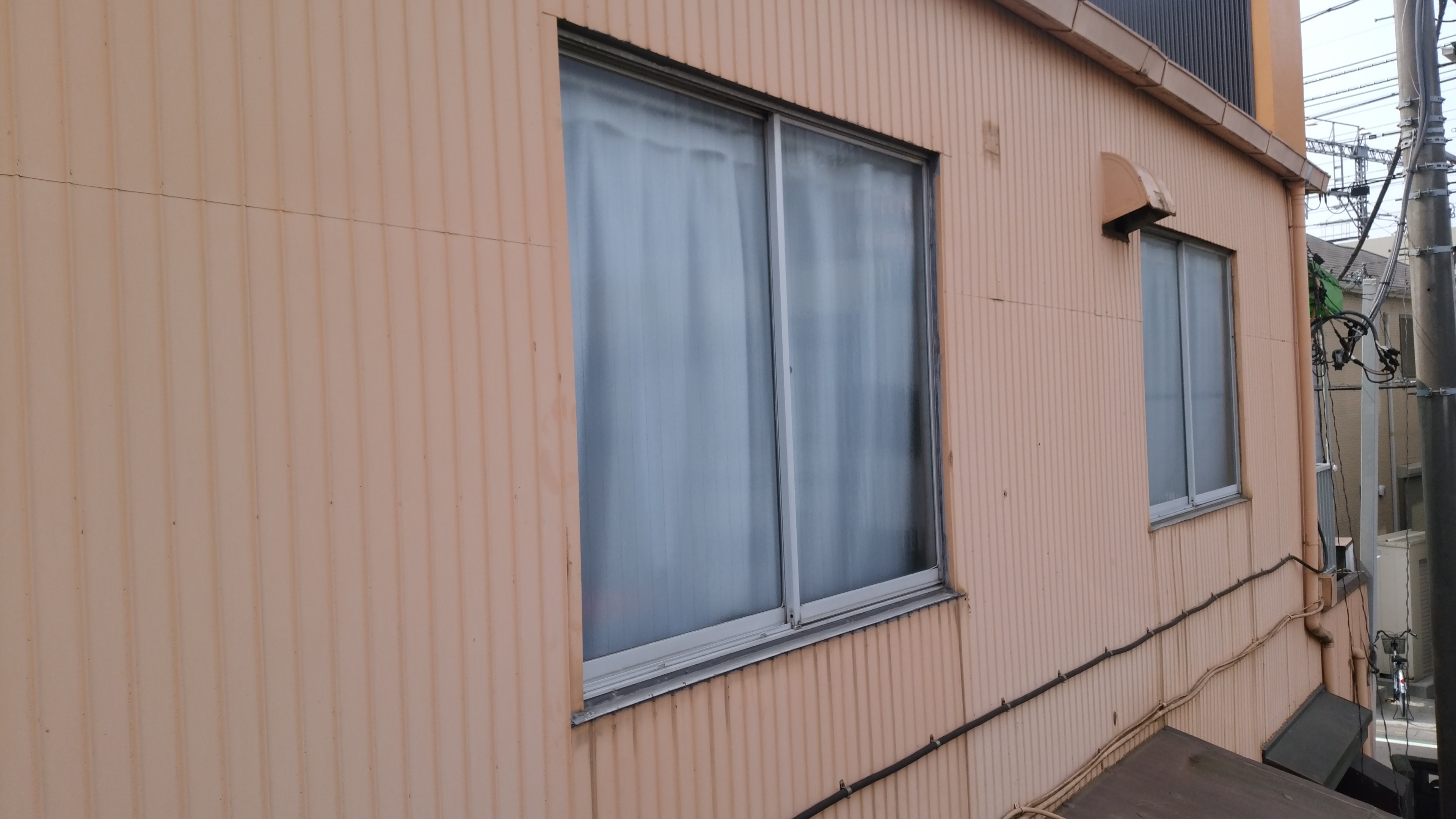 こちらは、リブ波やプリントと呼ばれる鋼板製の外壁材で、以前は住宅にも良く使われていましたが、最近はおしゃれな外壁材が増えあまり見なくなりましたね。